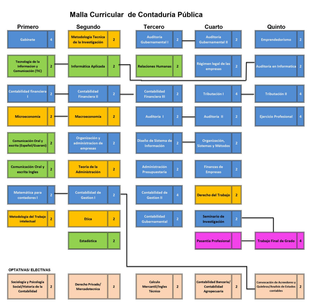 Las asignaturas se organizan por año y para la conclusión del curso, el estudiante deberá haber aprobado los siguientes requisitos: