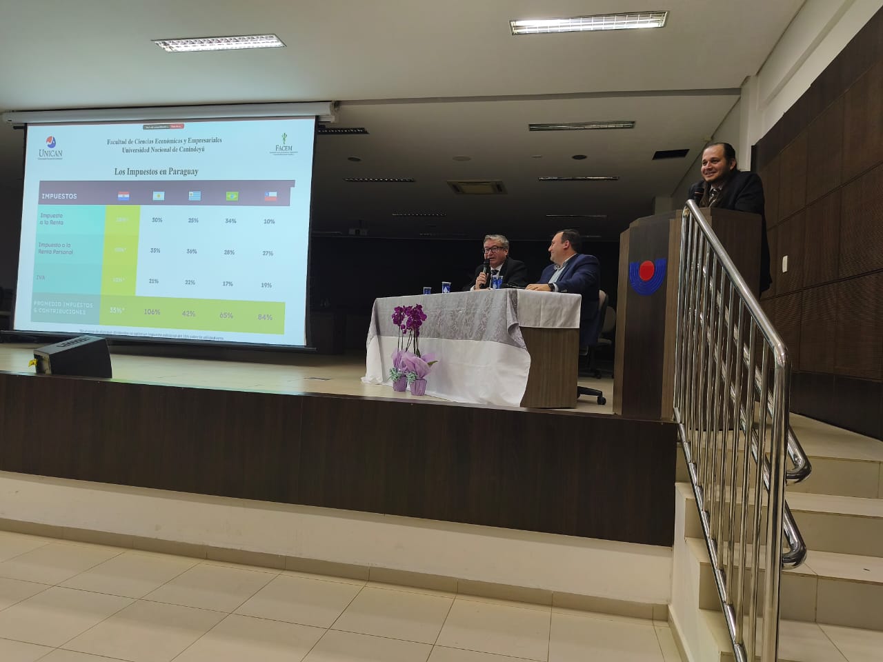 El Decano de la Facultad de Ciencias Económicas y Empresariales (FACEM), M. Sc. Víctor Ariel Ramírez Girett, expuso en la conferencia. El docente de Investigación, Dr. Derlis Daniel Duarte Sánchez, también fue ponente. Los académicos presentaron el tema: Tratamiento Contable y Tributario del Activo Biológico en Paraguay.