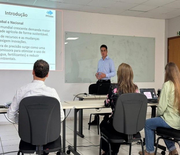 El trabajo de investigación, presentado el 26 de septiembre por el candidato Helisson Cassio de Souza, llevó por título: “Fatores que afetam a adoção da agricultura de precisão e sua contribuição para a sustentabilidade na região oeste do Paraná” (Factores que afectan la adopción de la agricultura de precisión y su contribución a la sostenibilidad en la región oeste de Paraná).