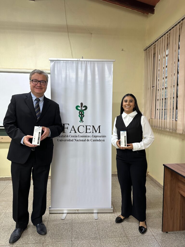 Por medio de esta noticia, la Facultad de Ciencias Económicas y Empresariales (FACEM), sede Saltos del Guairá, desea expresar su más sincero y profundo agradecimiento a la universitaria Milena Maria Duarte Ayala por su generosa donación de 2 (dos) presentadores inalámbricos.